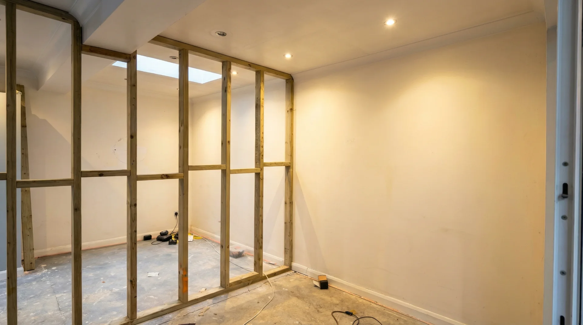 Timber stud partition walls with insulation and general carpentry. Quality finish for interior layouts and room divisions throughout Essex and North East London.